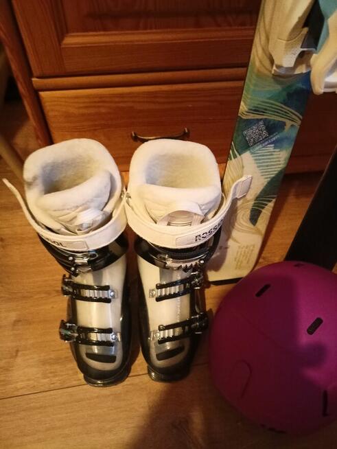 Narty zjazdowe roz.24.5 czyli 39 z butami ,kijami i kaskiem. 4 razy na nogach..kupione w ...
